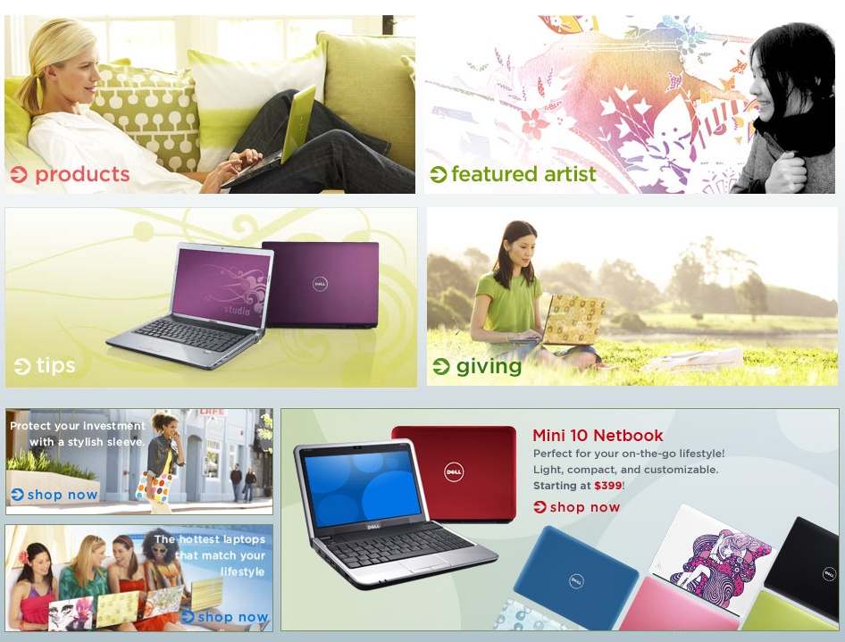 In 2009, Dell launched a site aimed at women, advertising their laptops, an example of sexist advertising and pigeonholing. Called "Della", the site uses soft-focus, pastel colours, and highlights the fact that Dell computers come in various colours and skins to "match your lifestyle". The "Tech tips" page contains such non-technical drivel as: