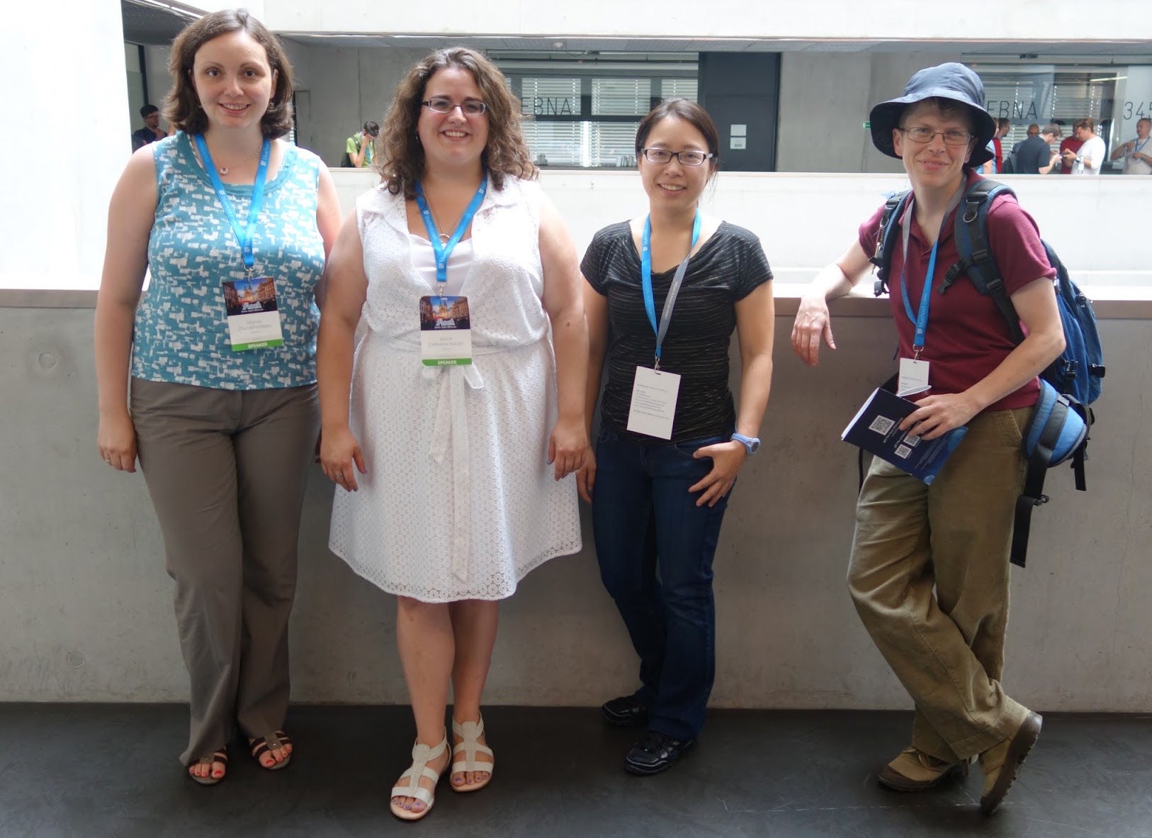 Program coordinator Marina Zhurakhinskaya with Fedora alums Marie Nordin and Karen Tang and Yocto Project alum Anne Mulhern at Flock 2014