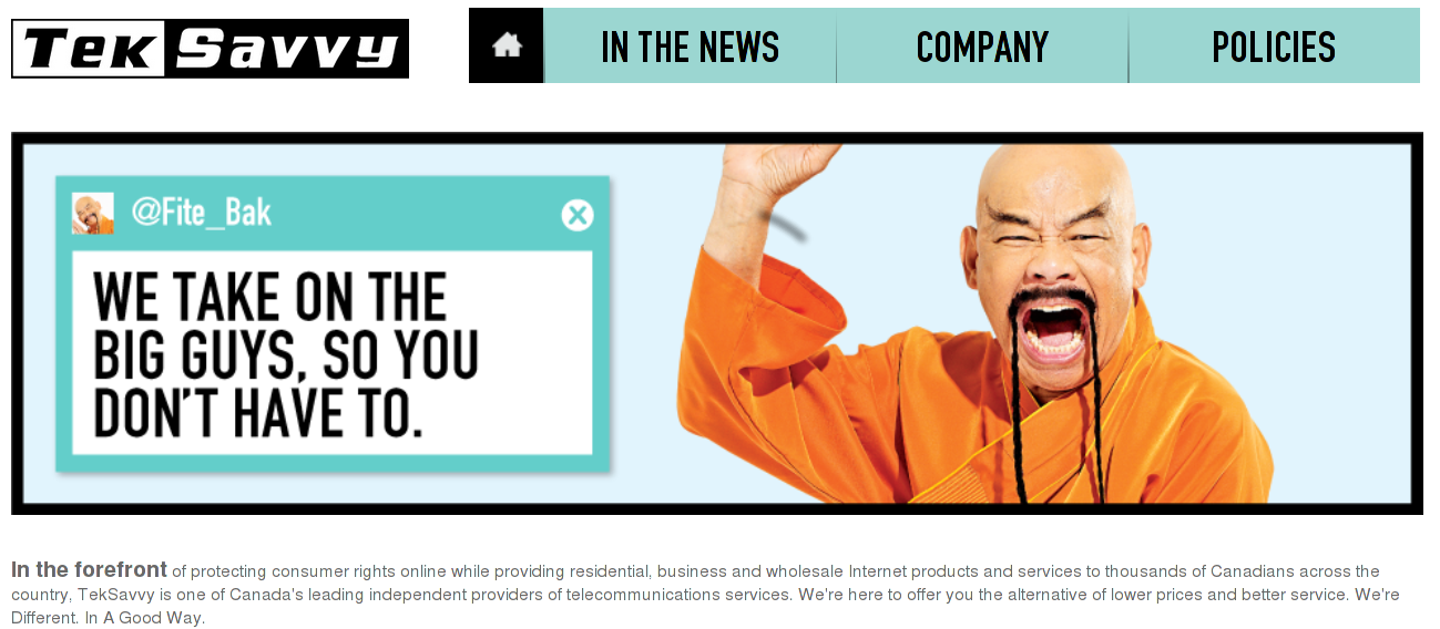 TekSavvy is an independent Canadian Internet Service Provider. In August of 2012, they rolled out an ad campaign featuring a slate of fictional characters as the face of the company. Unfortunately, several of these characters draw heavily on sexist or racist stereotypes.